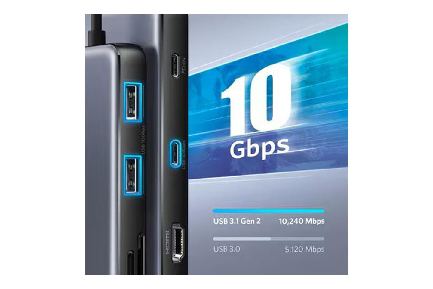 USB TypeCハブ(Anker/8-in-1/LAN)10Gbps